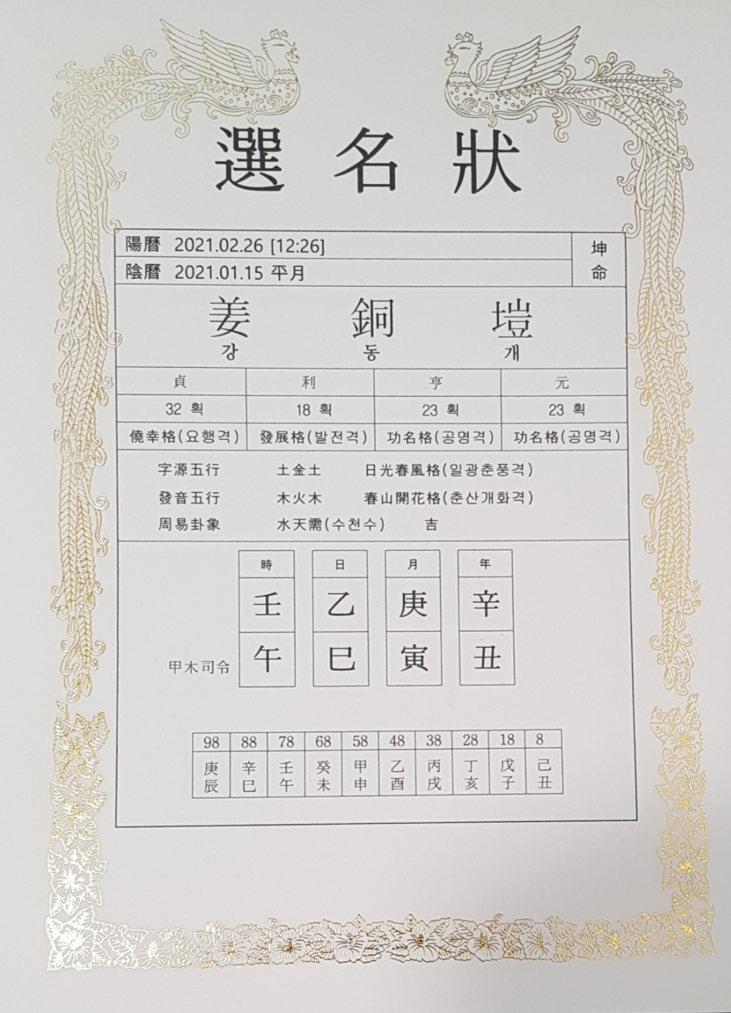 선명장의 세 개의 이름에 대하여 각각의 성명장을 따로 인쇄하고 그 격에 대한 해설을 추가하여 고객에게 제공하는 것이 원칙인것으로 알고 있습니다.