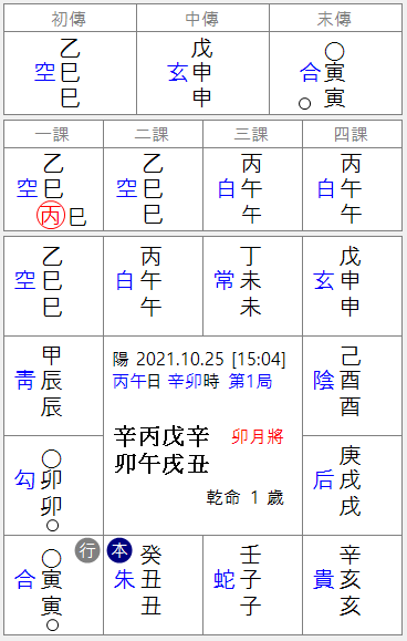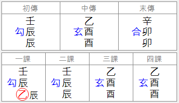 (음일은 3과가 초전으로 발용되지만 '을해'일 인 경우에 천간 '을'의 기궁은 진(辰)이므로 1과에서 하적상이