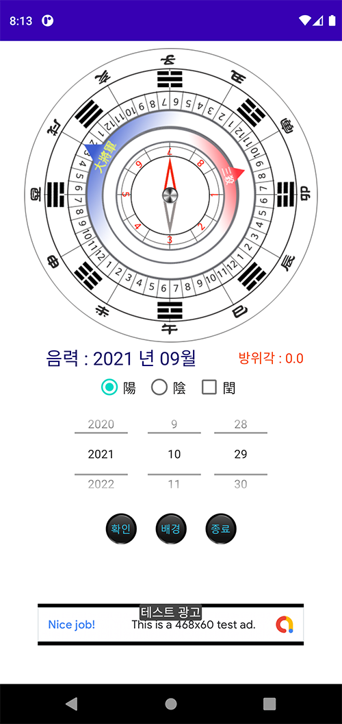 방위는 생활역학2 어플에 있는 내용과 동일 합니다.