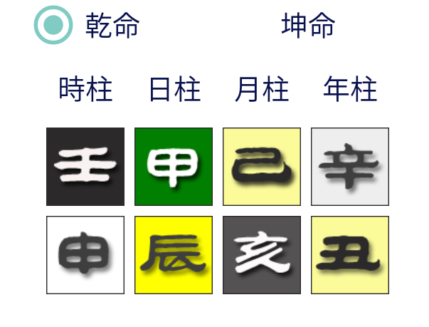 해월 갑목이 신금이나 해수를 보고 무기토가 힘을 얻으면 무기토가 해중 지장간 임수를 제극하고 신중 경금을 생하여 칠살과 정화 상관을 쓸 수 있으므로 공명을 이룬다.