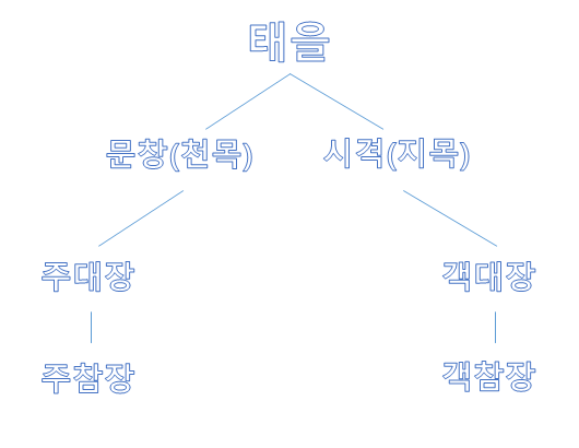 오장은 위의 그림에는 없으나 계신, 문창, 시격, 주대소장, 객소대장 이렇게 됩니다.