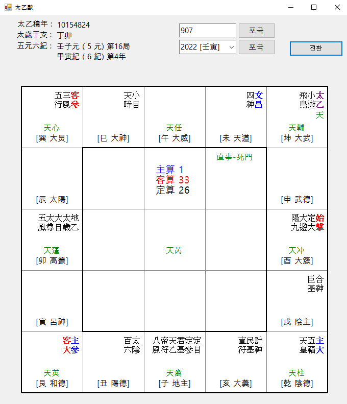 * 논문에 시격이 태을궁을 지나면 내궁격이라 되어있느데 논문 후반부에서는 또 외격(外擊)이라 되어 있습니다.