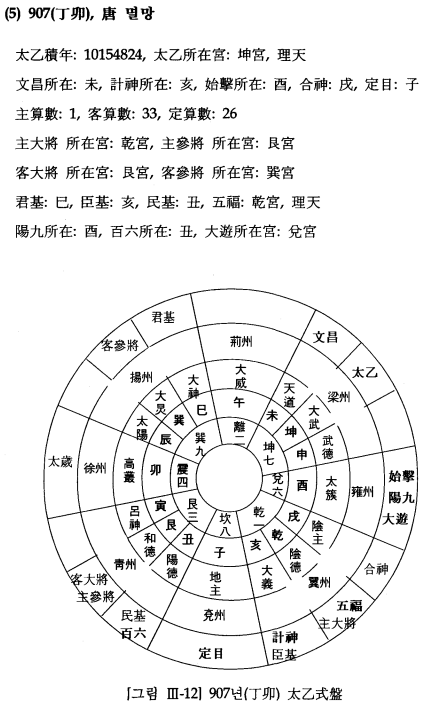 정묘년(907년) 사신태을수신이 육궁에 들고 옹주의 분야이다.