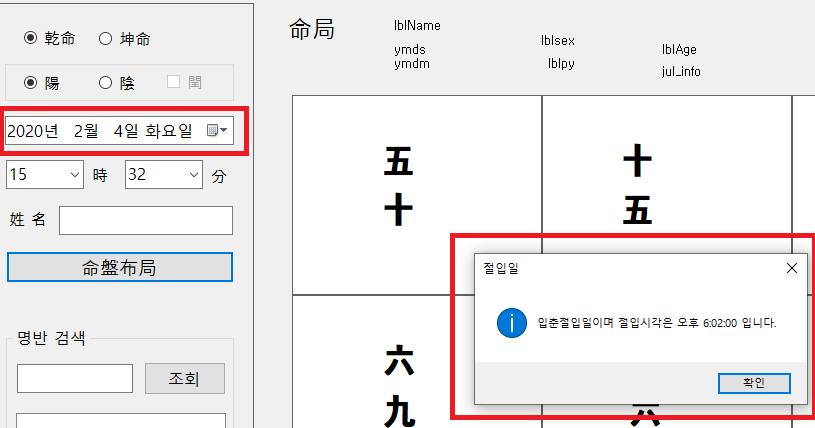 절입 전후로 인하여 사주팔자가 완전히 달라지므로 오류가 없는 완성도 높은 프로그램을 개발하기 위해서는 절기의 절입 시각이 아주 중요하다.