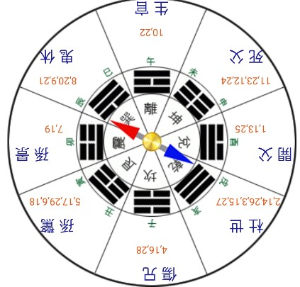 기문둔갑이 원래 방위술이라 나침반 기능을 위해서 일부러 거꾸로 해 놓은 것이구요.(지도상 위쪽이 북쪽이므로)
