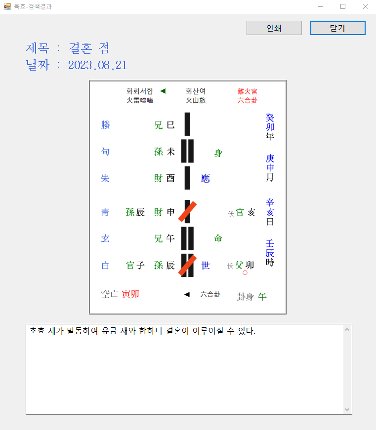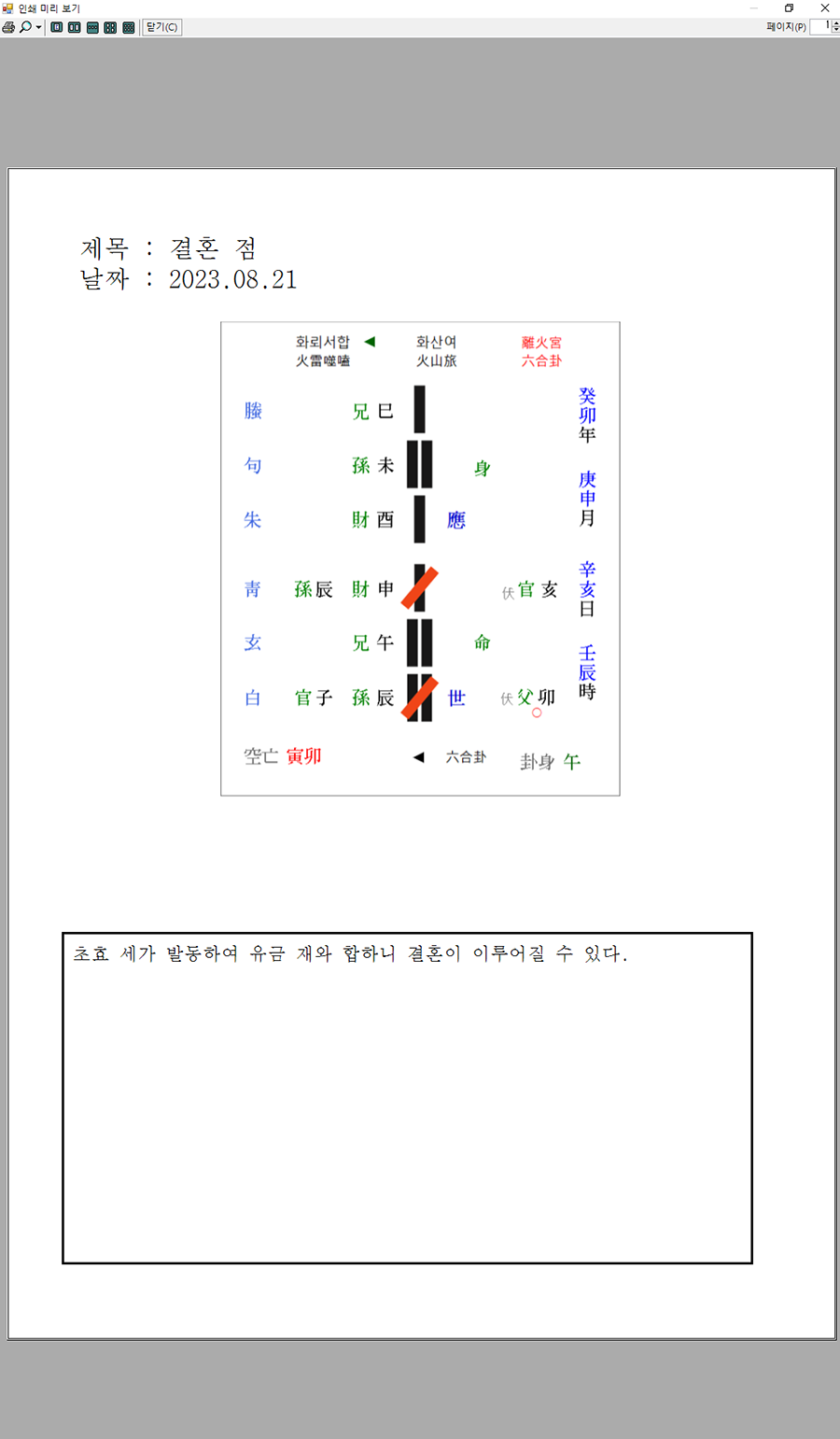신변잡기 육효 수정 마무리 랜서2 2023. 8. 21. 09:30 728x90 반응형 육효 보완해서 추가되었습니다. 저장화면 입니다. 저장된 내용을 불러온 화면입니다. 인쇄전 미리보기 화면 입니다. 기문둔갑 프로그램에 기능을 보완해서 업그레이드 되었습니다. 728x90 반응형 공유하기 게시글 관리 랜서의 생활역학 '신변잡기' 카테고리의 다른 글 타로 작업 계속. (0) 2023.08.28 타로. (2) 2023.08.25 육효 기능 보완 (0) 2023.08.18 육효어플 수정배포 (0) 2023.08.02 데이타 이전(마이그레이션) 작업 (0) 2023.08.02 '신변잡기' Related Articles 타로 작업 계속. 타로. 육효 기능 보완 육효어플 수정배포