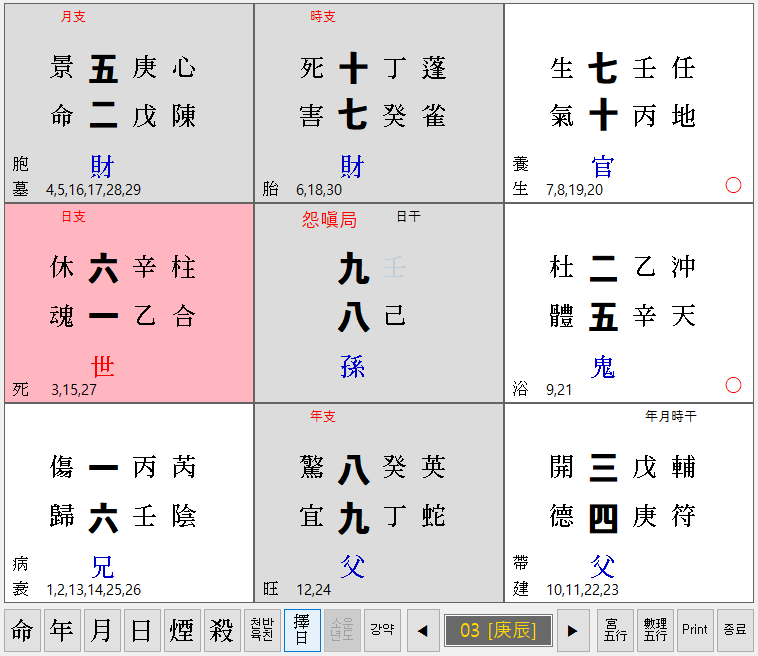 하단에 현재월이 03[庚辰]이라 표기 되어 있습니다.