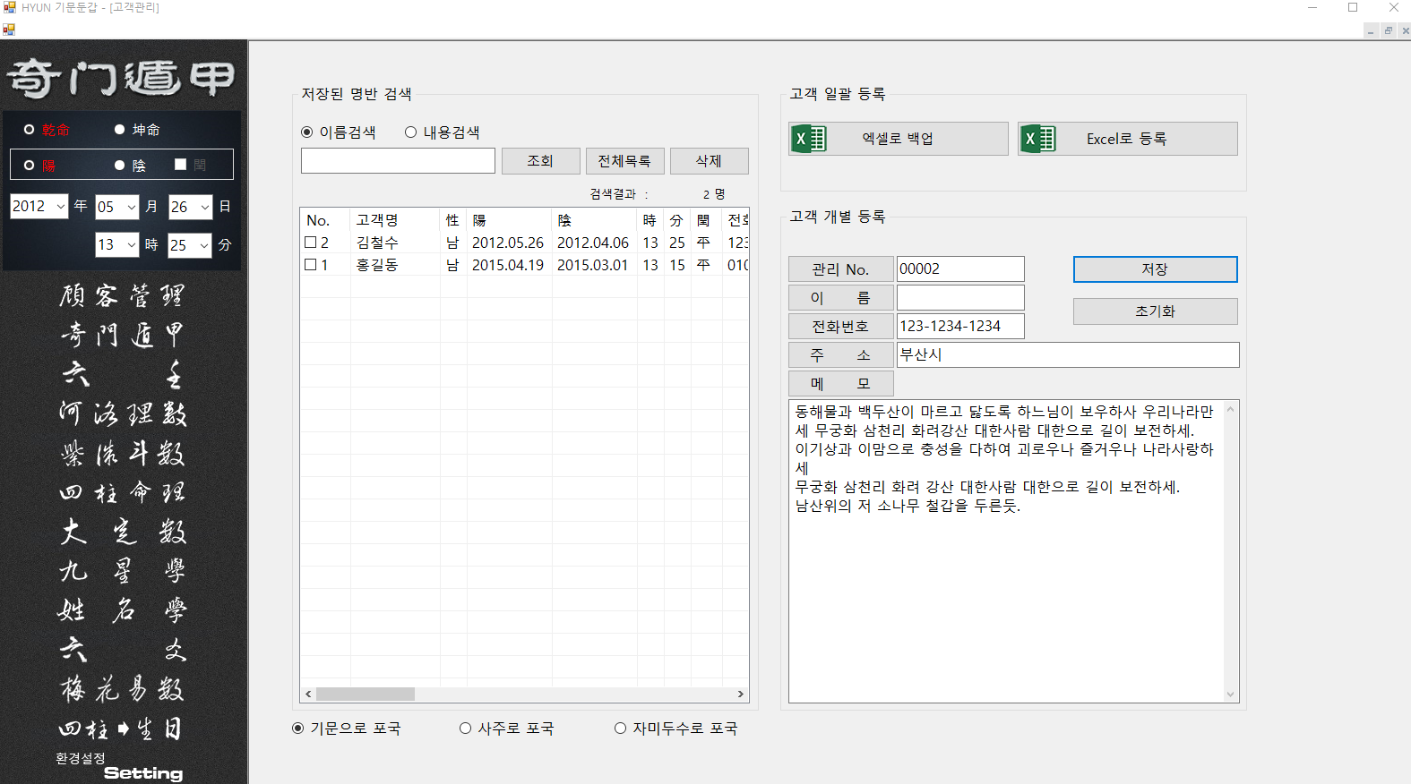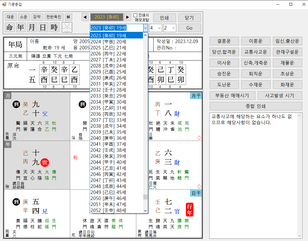 년국 버튼을 클릭하면 가로로 넓어지면서 오른쪽에 '기문둔갑 신수결'의 내용이 나옵니다.