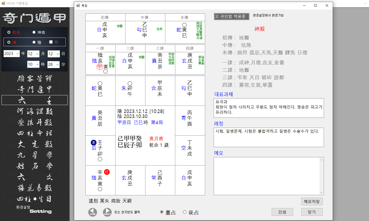현재시각으로 볼 수 도 있으며 왼쪽 화면에 날짜를 입력해서 평생국으로 볼 수 도 있습니다.