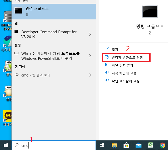 2. 관리자 권한으로 샐행을 클릭한다. 관리자 권한으로 실행하지 않으면 진행이 되지 않는다.