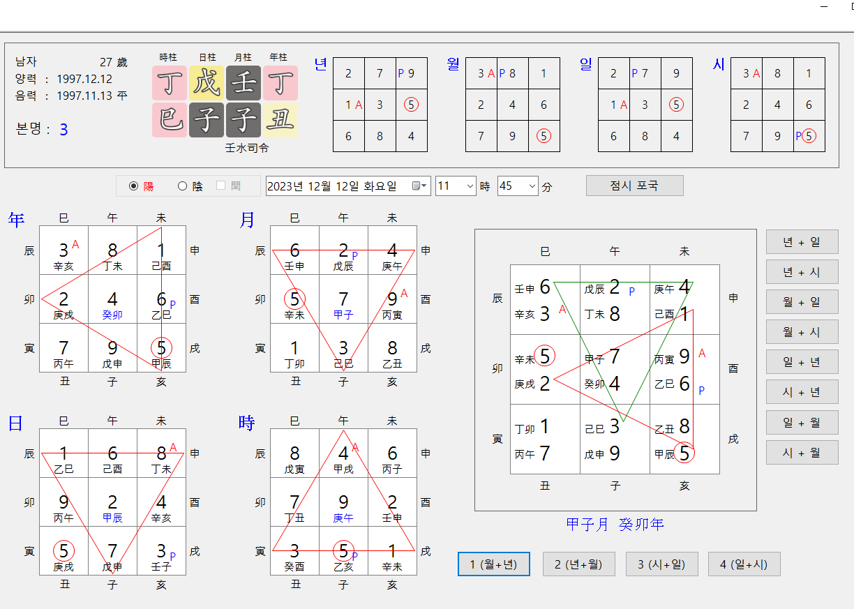 위에 있는 것이 사주에 대한 년월일시반이고