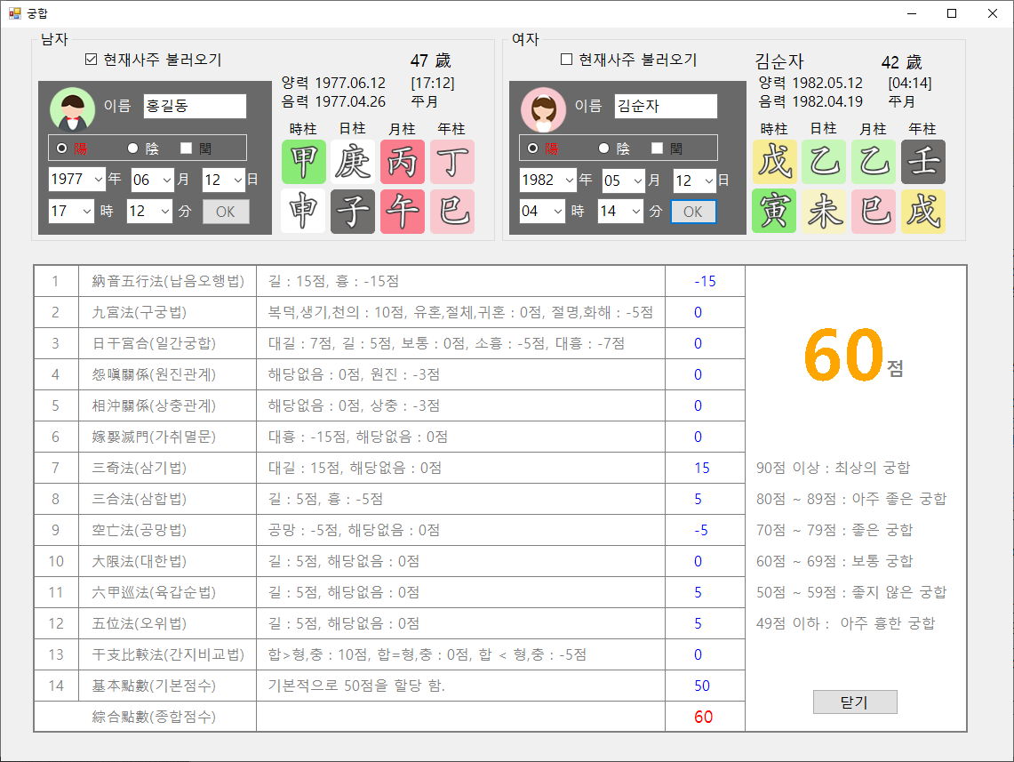 궁합 프로그램인데 이것도 사주프로그램 안에 포함되어 있습니다.