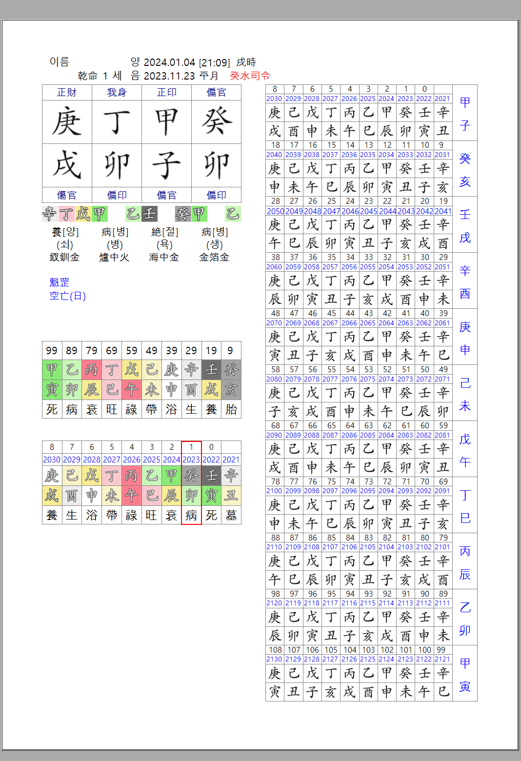 전체 대운을 출력할 필요가 있을것 같더군요.