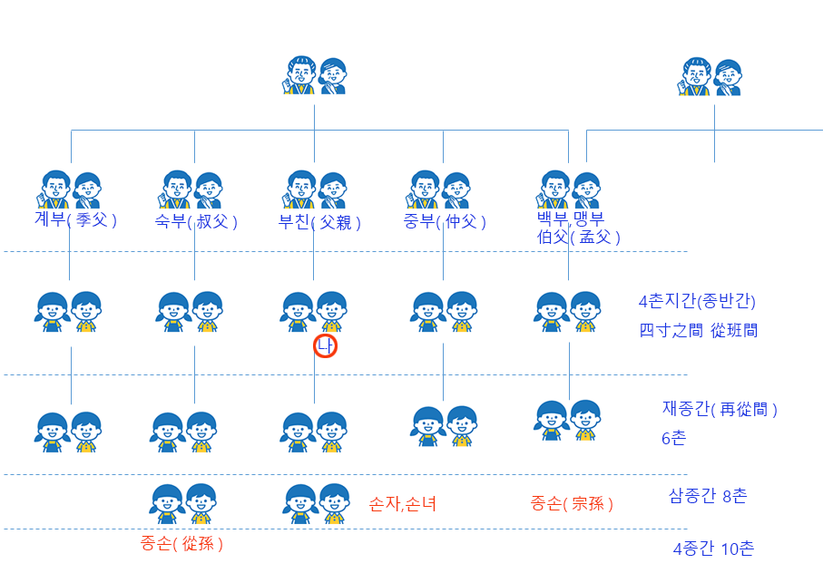 촌수는 말 그대로 나와 상대가 친족관계로 몇 마디 인지 세어보면 되는 것이지요.