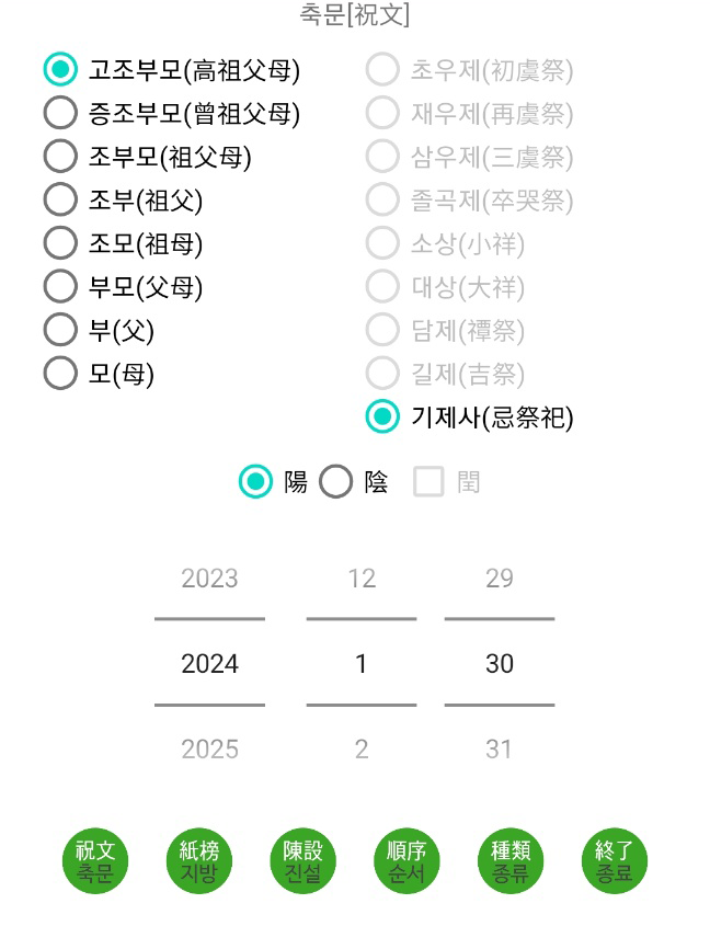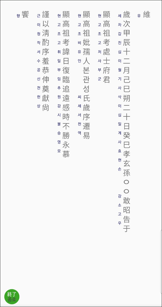 아래는 제 어플에서 축문을 쓰는 화면입니다.
