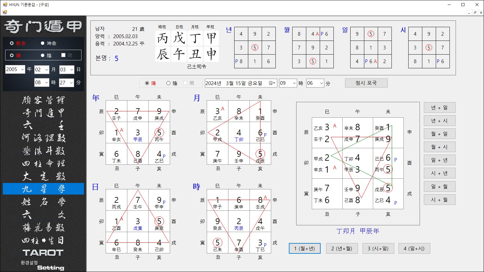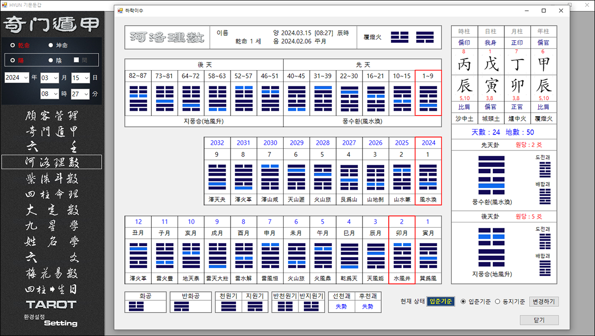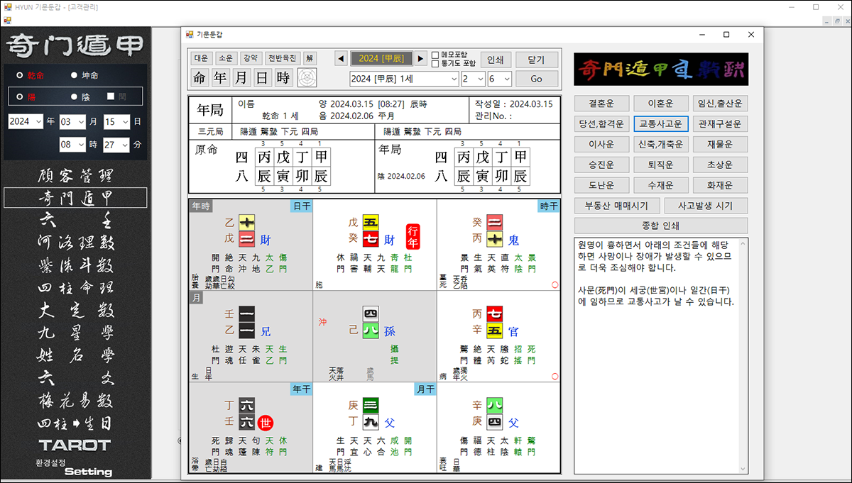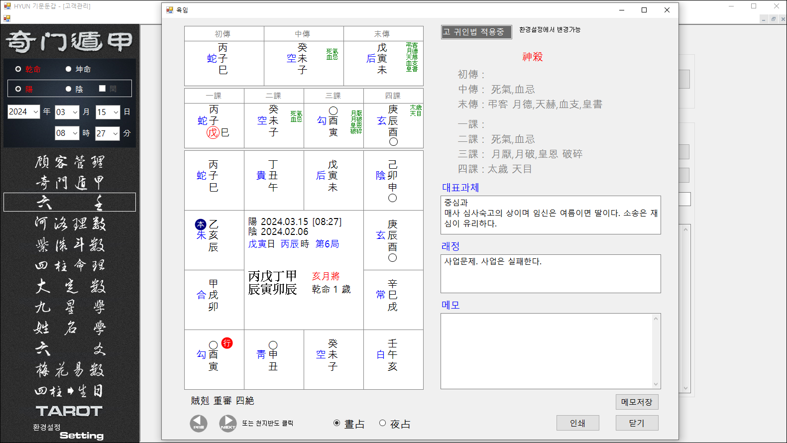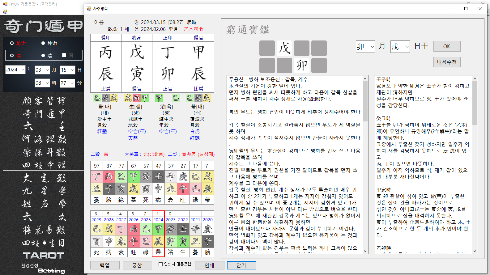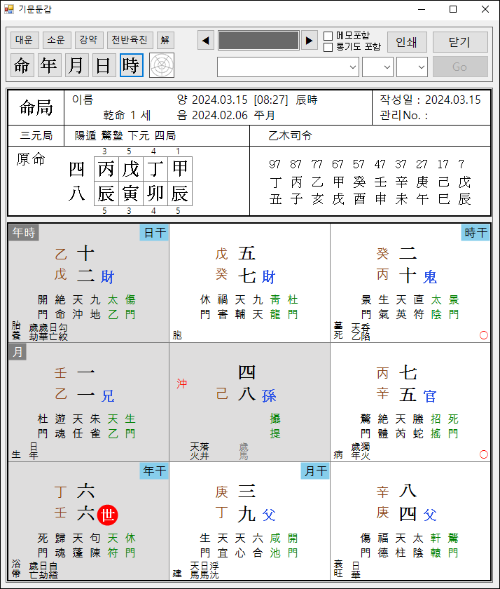이 생일을 더블클릭하면 자동으로 기문둔갑으로 포국 됩니다.