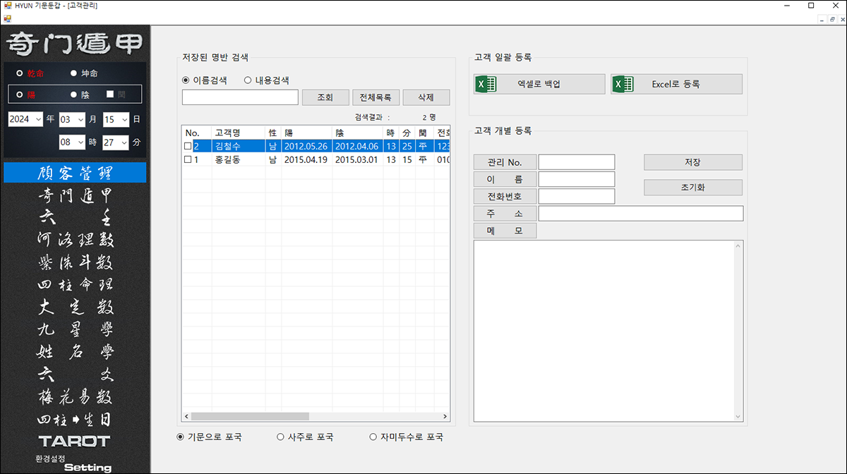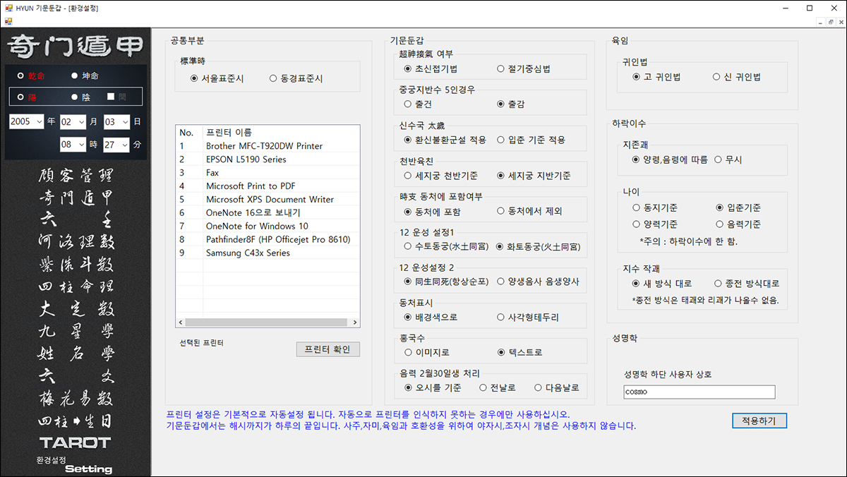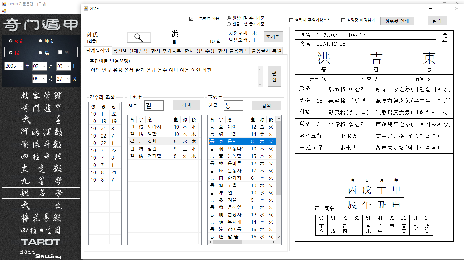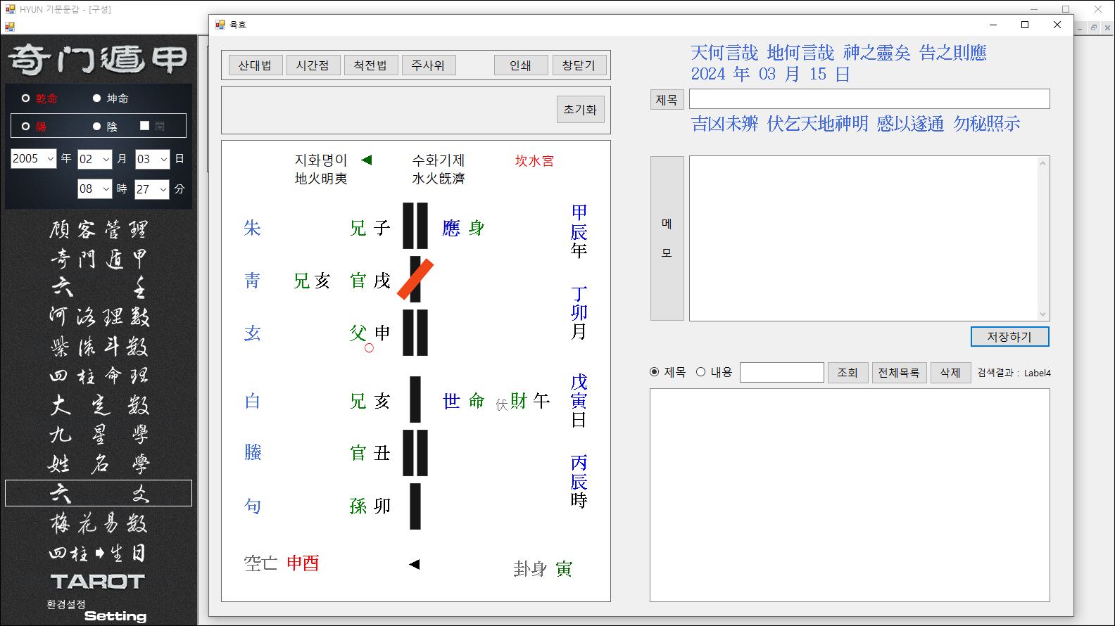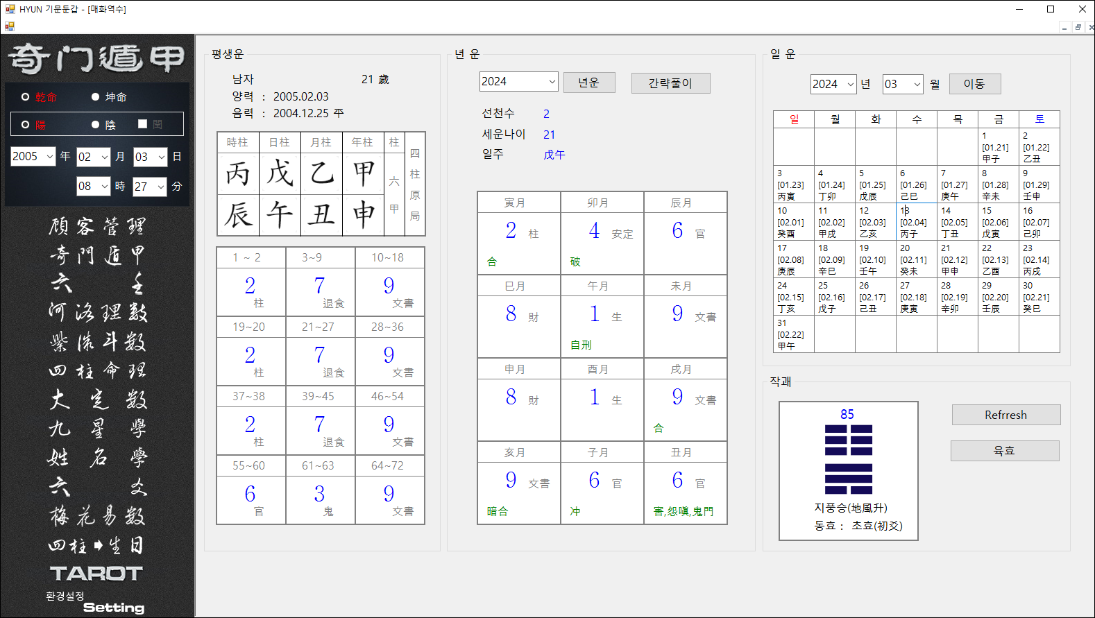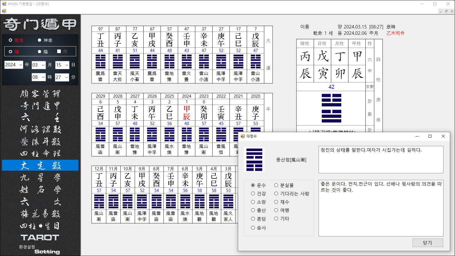 이 생일을 더블클릭하면 자동으로 기문둔갑으로 포국 됩니다.