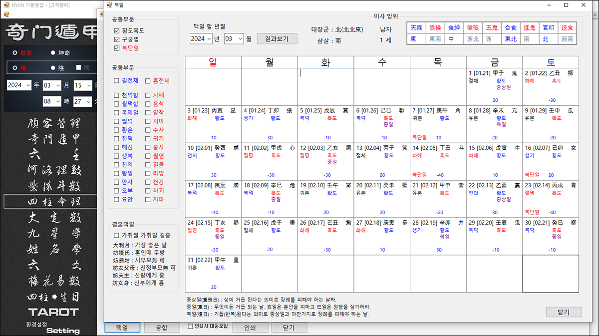 6-1. 사주명리 하단에 버튼이 있는 택일 화면 입니다.