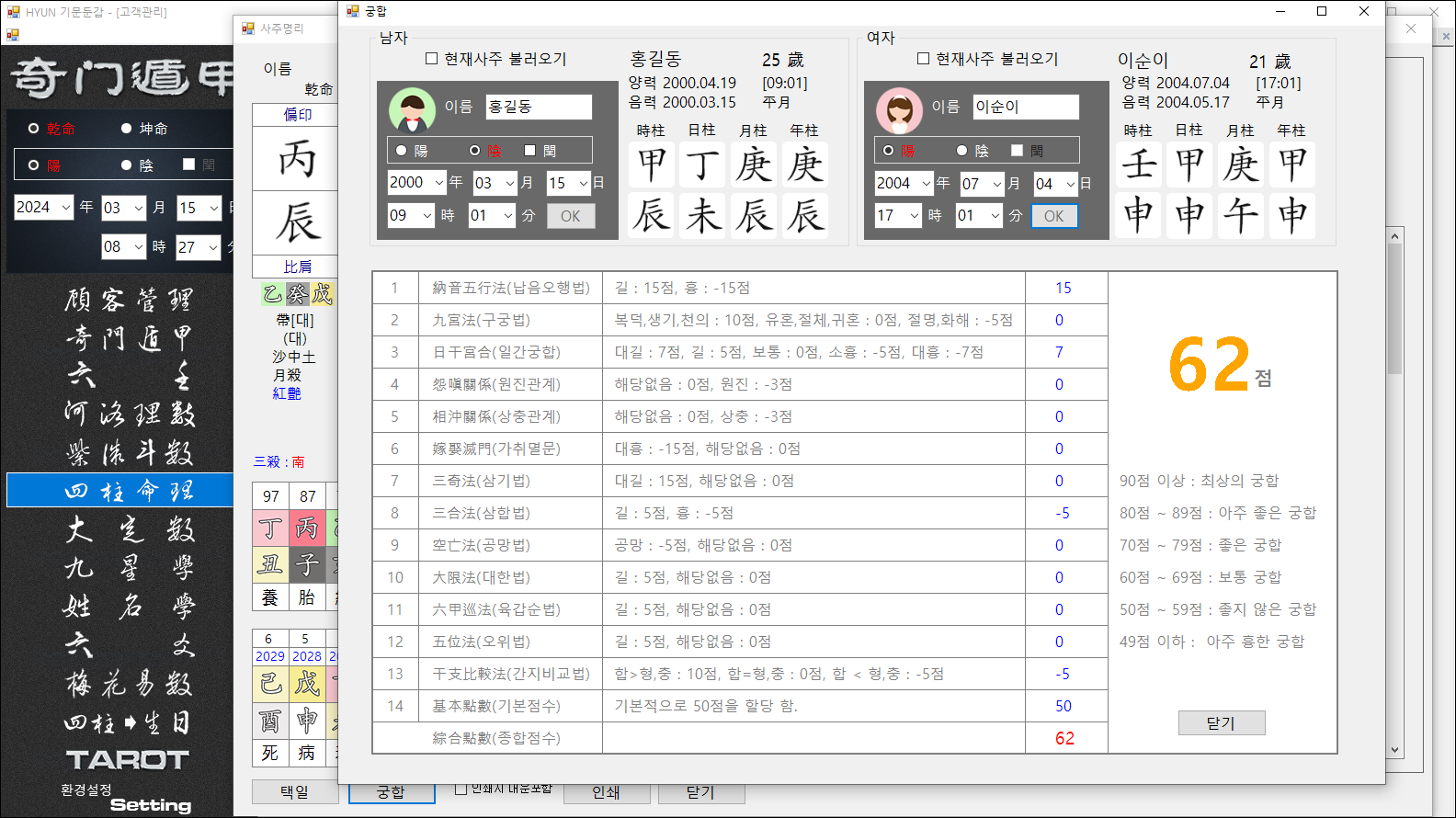 6-2. 사주명리 하단에 있는 궁합 화면 입니다.