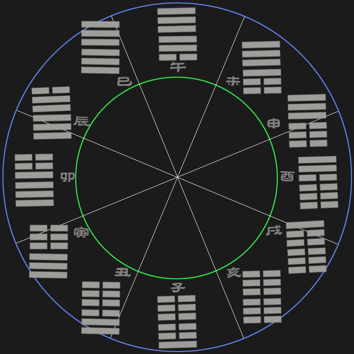 팔괘 그림을 방사형으로 그려놓으니까 괘를 거꾸로 읽는 사람이 많아서 바로 읽을 수 있게 다시 그렸습니다.