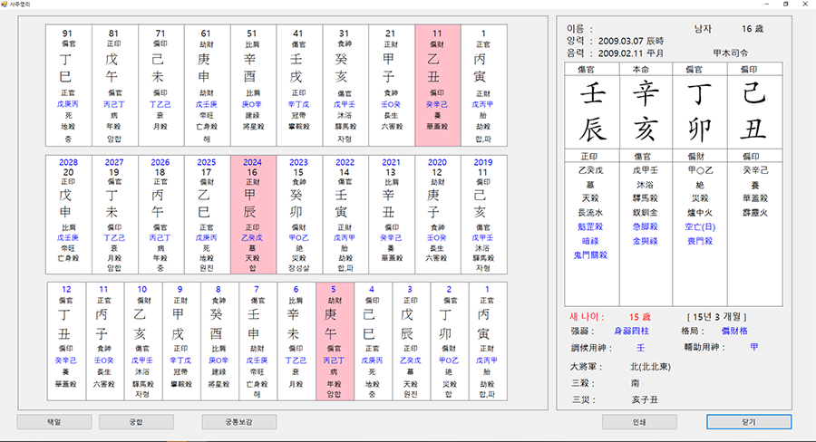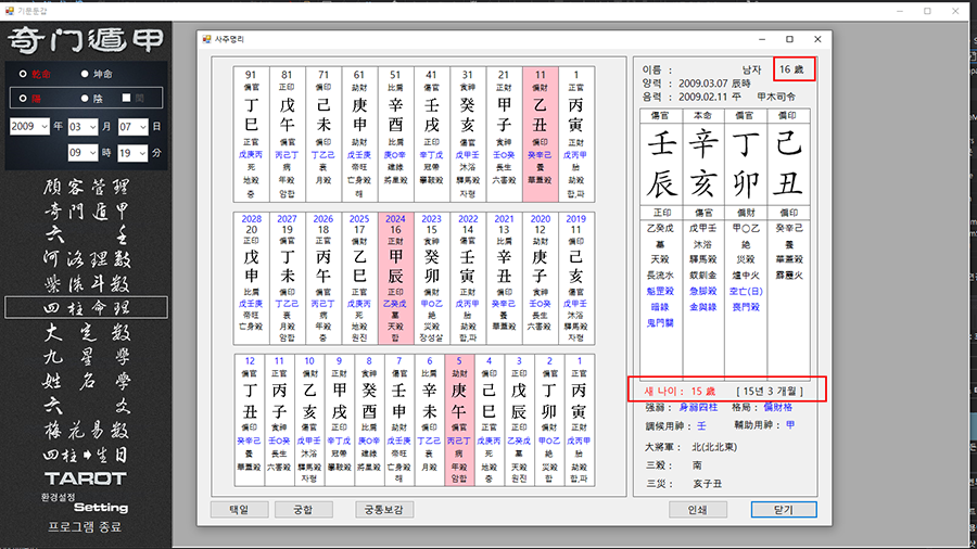 상단에 있는 나이는 띠를 기준으로 즉, 입춘을 기준으로 나이를 계산하는 전통적인 방법이고
