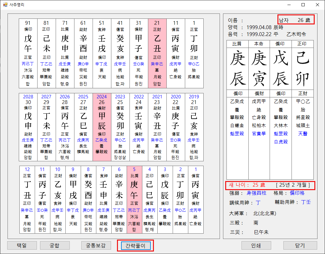 그 중에서도 사주프로그램이 가장 많이 수정된 것 같습니다.
