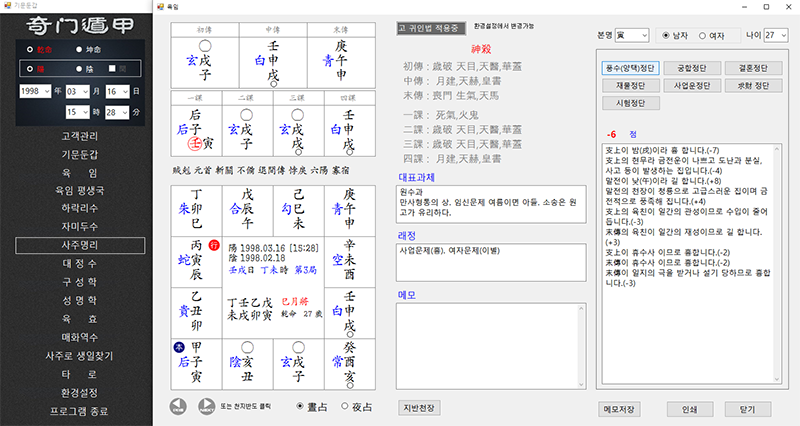 생년월일을 수정해서 육임버튼을 클릭하면 평생국이 되기 때문에 첨에는 굳이 구분하지 않았습니다.