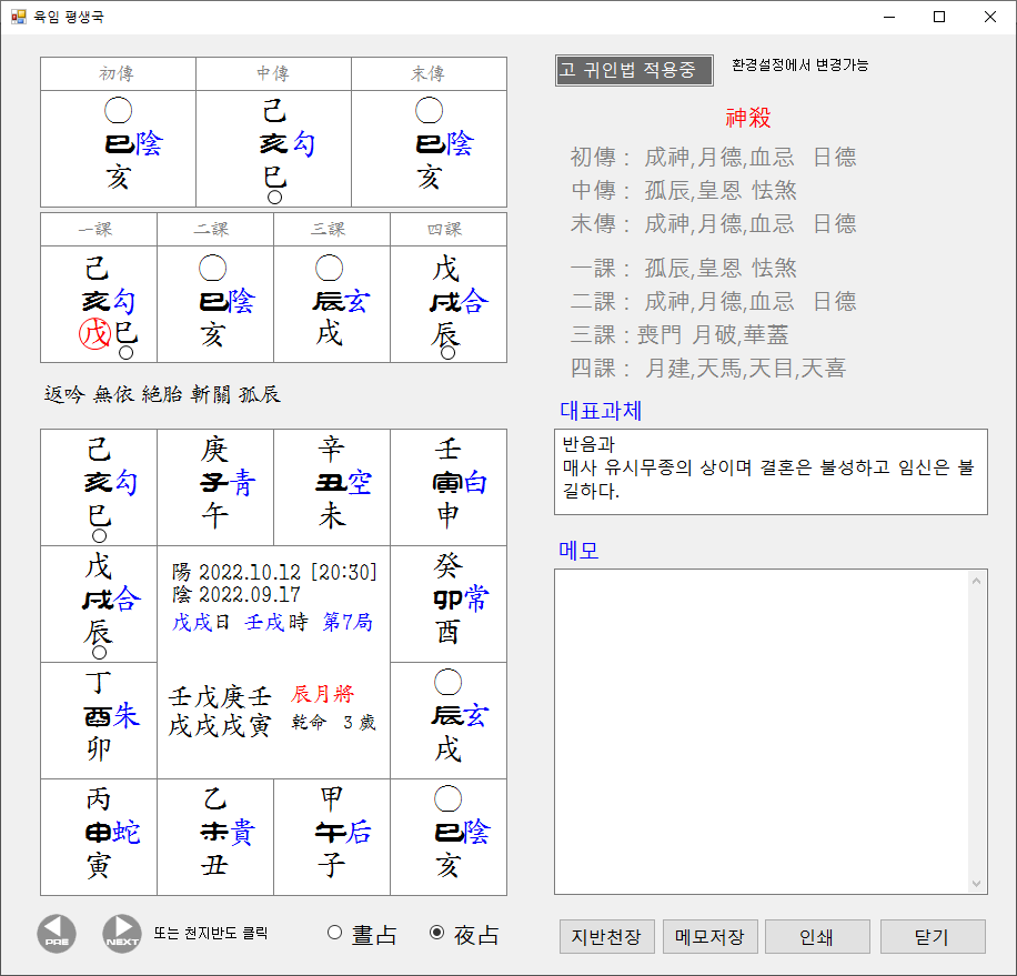 상단 타이틀에 '육임 평생국' 이라 되어있지만 과거 시점의 과전도를 가져오기 위해 평생국을 이용하였습니다.