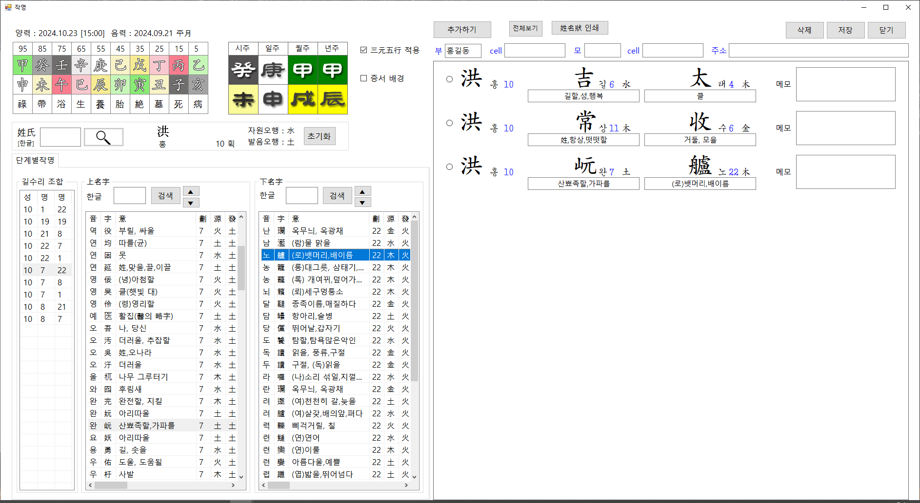기존 기문둔갑 프로그램에 포함된 성명학 프로그램의 기능을 보완하여 별도의 독립된 프로그램으로 출시할 예정입니다.
