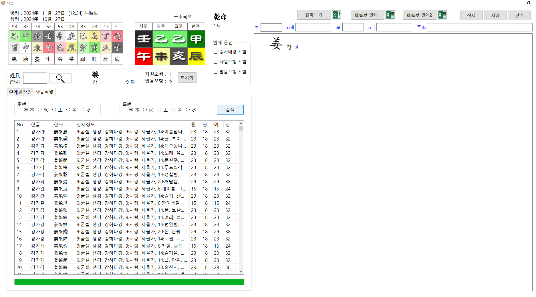 기존 프로그램의 성명학에는 자동작명 기능이 있었습니다만
