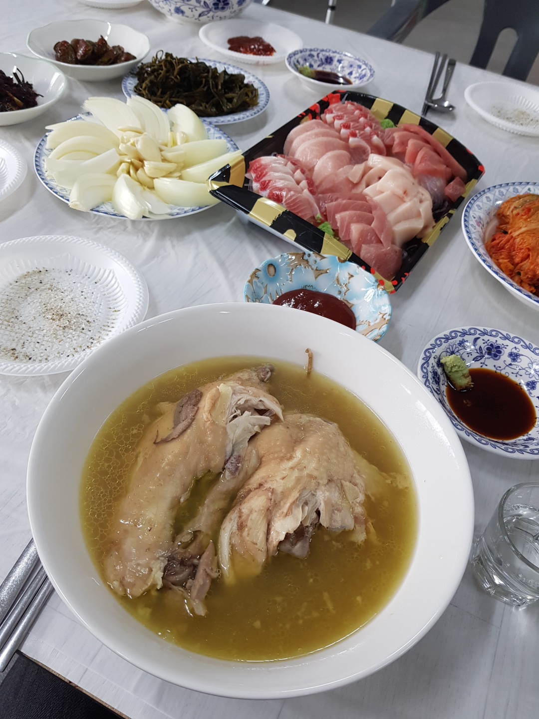 맛있는 참치와 백숙이 기다리고 있습니다.