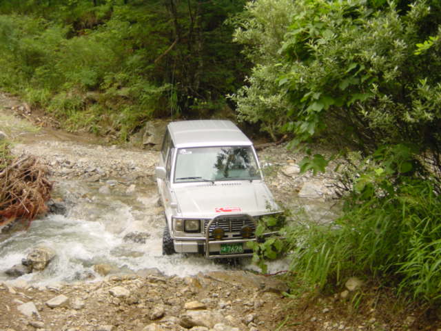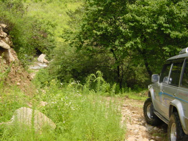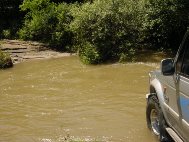 하이리프트잭으로 뒤를 들어올리고 바위로 보강을 한 다음 윈치로 첫 번째 난코스를 통과 했으나 두 모빌간 거리가 너무 가까워 윈칭을 계속할 수 없다.
