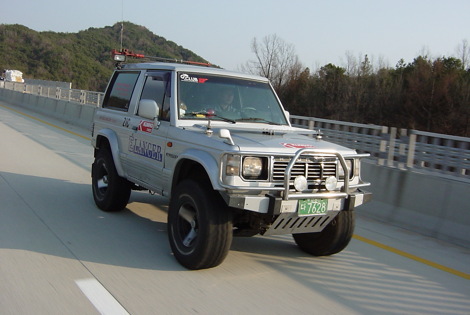 갤로퍼 숏바디는 앞이 무겁고 뒤가 가볍기 때문에 비에 젖은 자갈길이나 도로에서 코너링시에 뒤쪽이 돌아가는 경우가 많습니다.