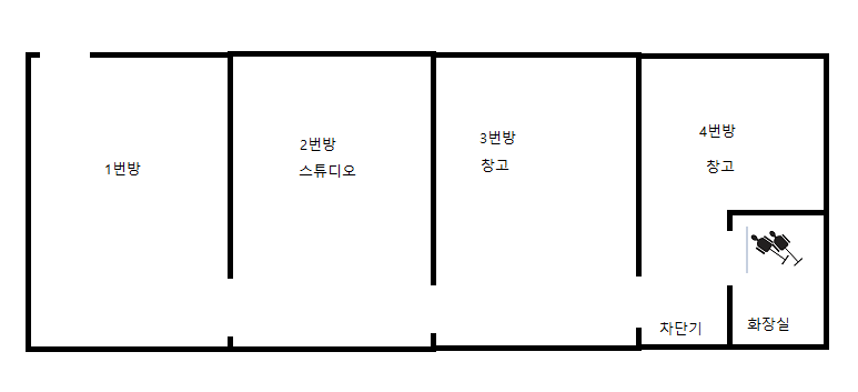 출입구에서 제일 멀리 떨어져 있을 뿐더러 제일 깜깜하고 다른 방과 달리 차단기가 유난히 잘 떨어지는 방입니다.