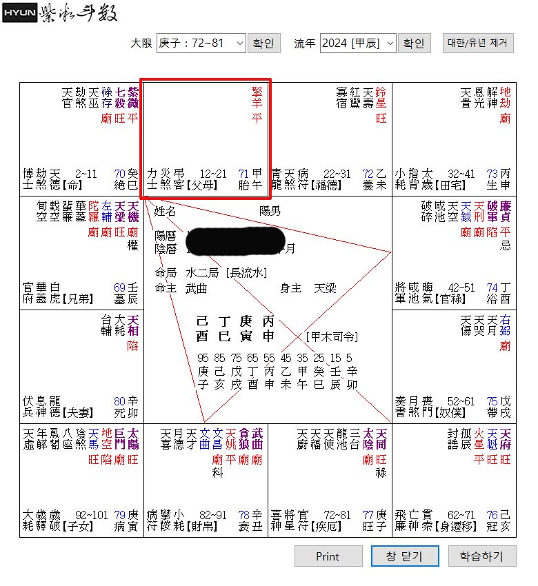 자미두수 프로그램으로 확인 해 보겠습니다.
