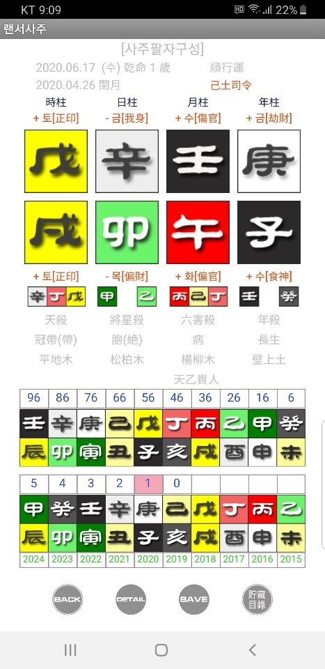 ( 5번항목은 실제로 사주풀이에서 크게 사용되지는 않으나 학습의 이렇게 보는 습관은 나중에 필요 함. )