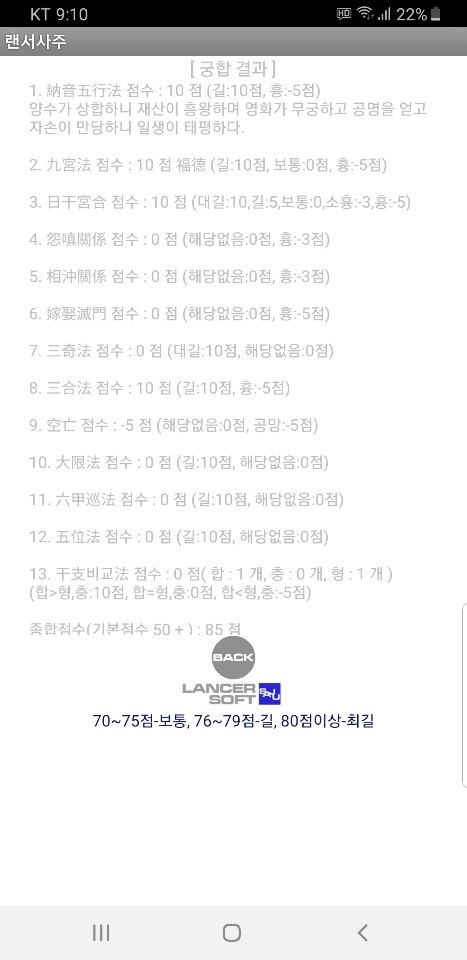 위의 경우 85점이 나왔는데요, 이것은 거의 최길 이라 보시면 됩니다.
