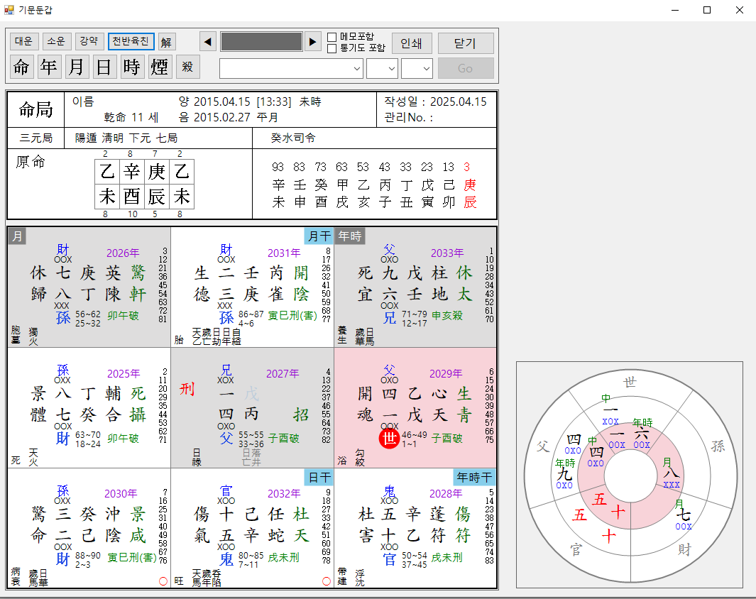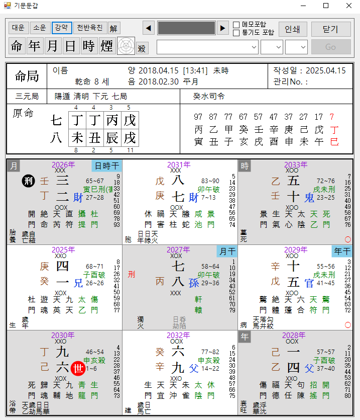 시가기문에서 대운은 의미가 없습니다만 상단부분은 홍국기문이 그대로 나오게 했습니다.