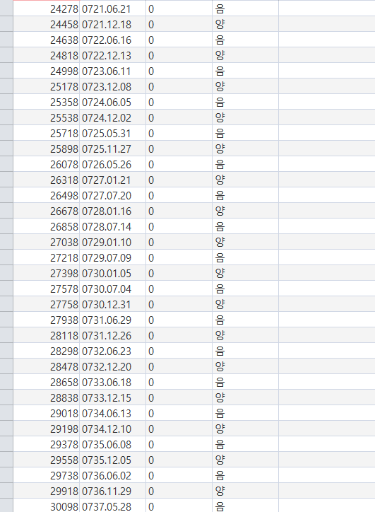 저는 이렇게 만들어서 사용합니다. 655년 부터 2130년 까지 되어 있는데 일부에는 최근 데이타만 들어있습니다.