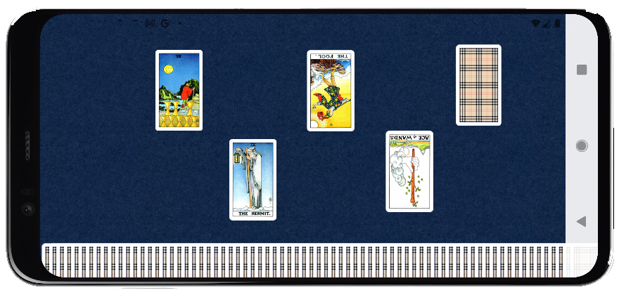 쓰리카드, 포카드 등은 세로 방향으로 카드를 훨씬 더 크게 배치할 것이지만 78장을 하단에 배치해서 사용자가