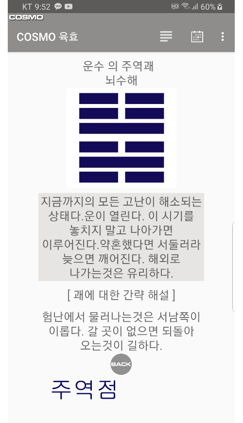 위의 화면이 주역점 결과 입니다.