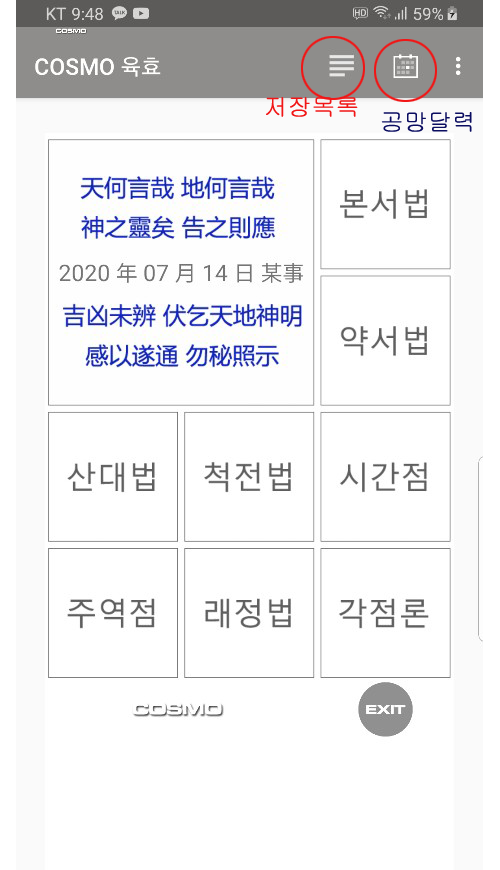 구글 플레이스토어에서 'COSMO 육효' 라는 이름으로...검색하시면 됩니다.