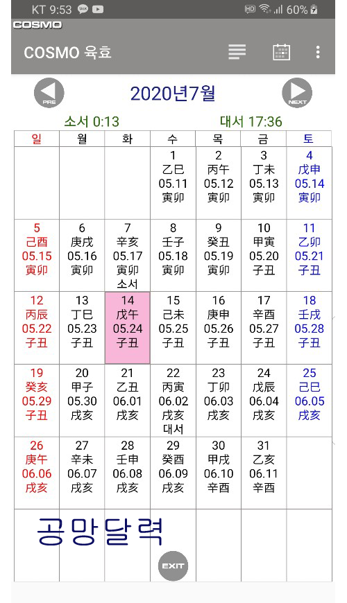 그외에도 공망달력이나 주역점 기능등이 포함되어 있습니다.