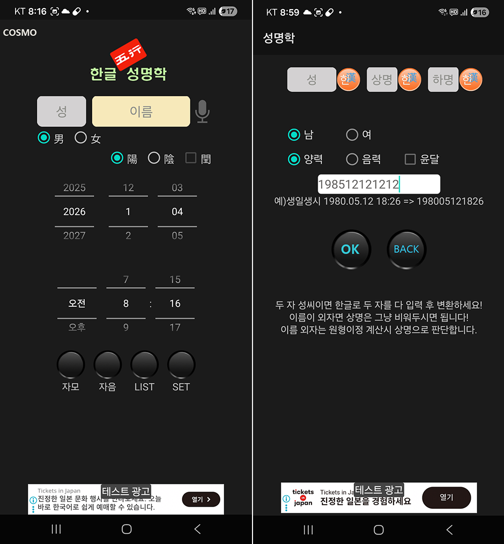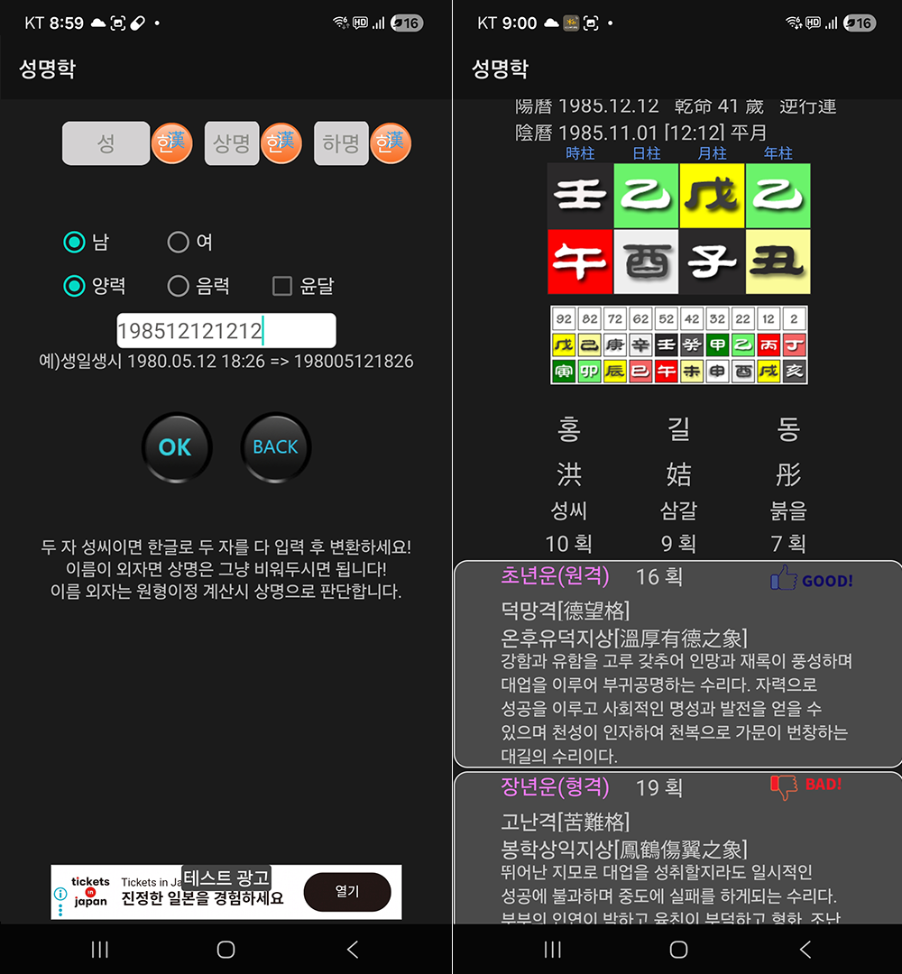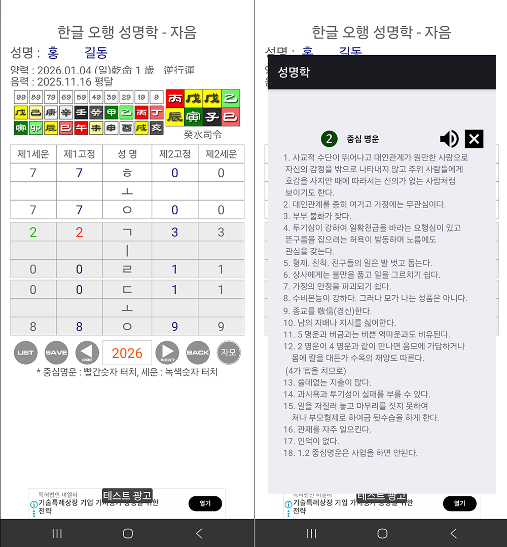 무료어플이므로 구글플레이 스토어에서 '한글성명학' 으로 다운받으시면 됩니다.
