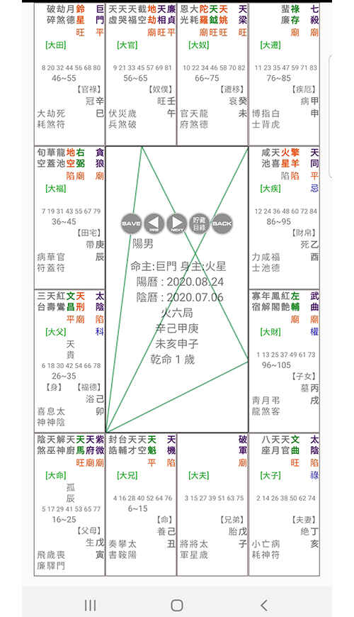 자미두수 어플리케이션으로 가로화면 세로화면 전환기능을 지원하며 태블릿에서도 이용이 가능합니다. 음성으로 포국하는 기능 지원됩니다. 남자 음력 1945년8월7일 자시 또는 01시 20분 모두 지�