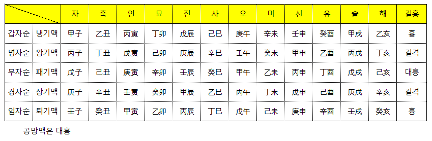 묘의 가운데 있는 신묘~ 해까지 무자순 패기맥은 대흉이라 사용하지 않는다는 말입니다.