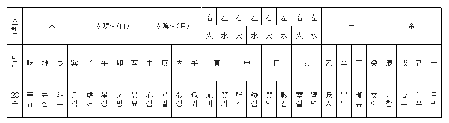 이십팔수(二十八宿)의 분경오행(分經五行)을 살펴보면 그 사(砂)와 혈(穴)의 생왕노살설을 논하는데