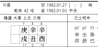 태어난지 약 한 달이 지나기도 전에 입춘이 지나면서 띠로는 두 살(임술년)이 되어 버리는 경우 입니다.