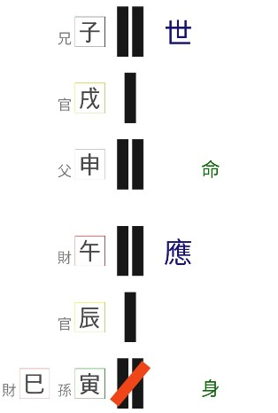예를들어 태아의 남녀 구분을 위해 육효점을 친 경우 위와 같은 결과가 나왔다고 하면,
