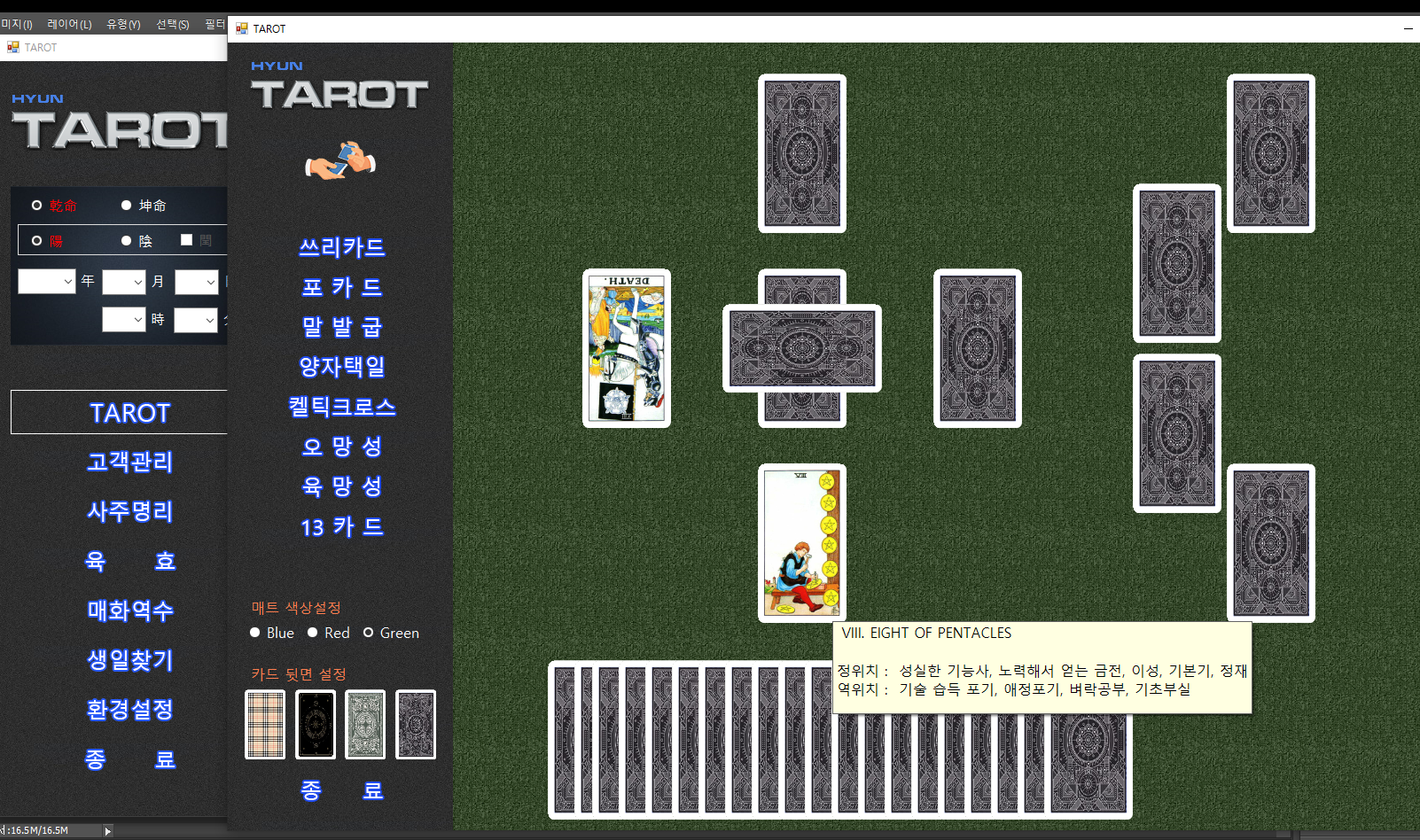 78장을 모두 깔아두었으니 순서 상관없이 중간에 아무 카드나 선택해서 뽑아내면 되는것이지요.